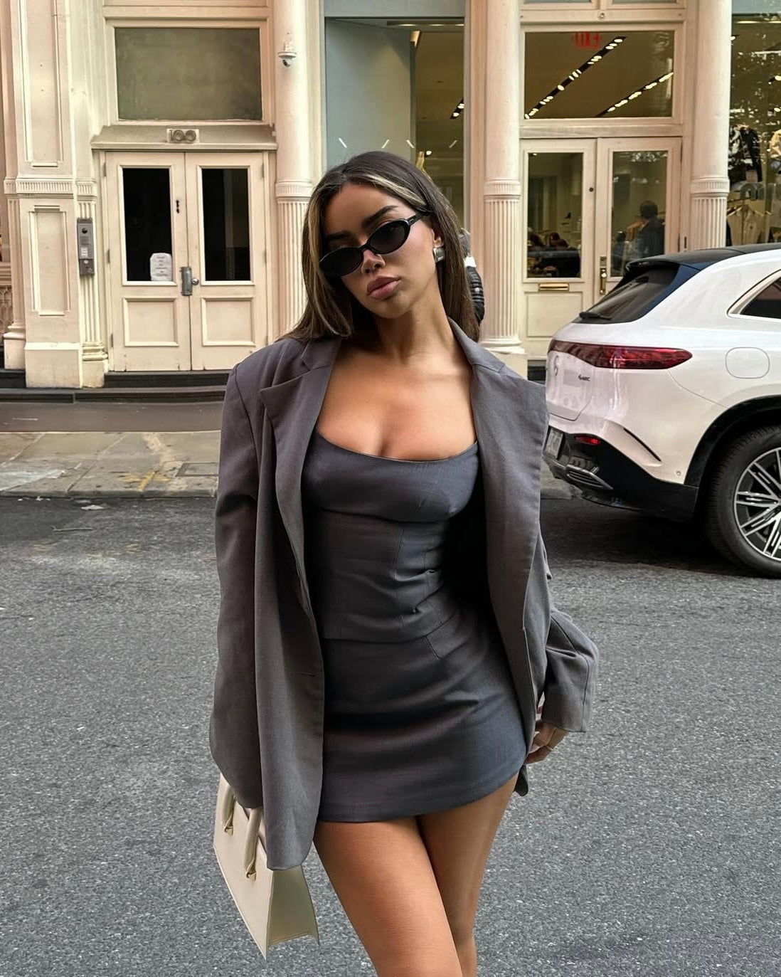 Our Iris Set, tailored to perfection for the modern corporate queen. The top boasts structured lines that command attention, while the skirt strikes the ideal balance between femininity and authority. This ensemble isn't just clothing; it's a statement, a declaration of power for the ambitious woman navigating the urban jungle.