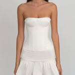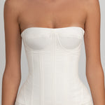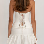 The Renee Corset Top is designed to sculpt and enhance. Featuring a strapless, structured silhouette with boning for support, this piece defines the waist while maintaining a sleek and flattering fit. The lace-up back adds a touch of femininity, making it a statement piece to pair with jeans for a night out look or matching with the Renee skort.